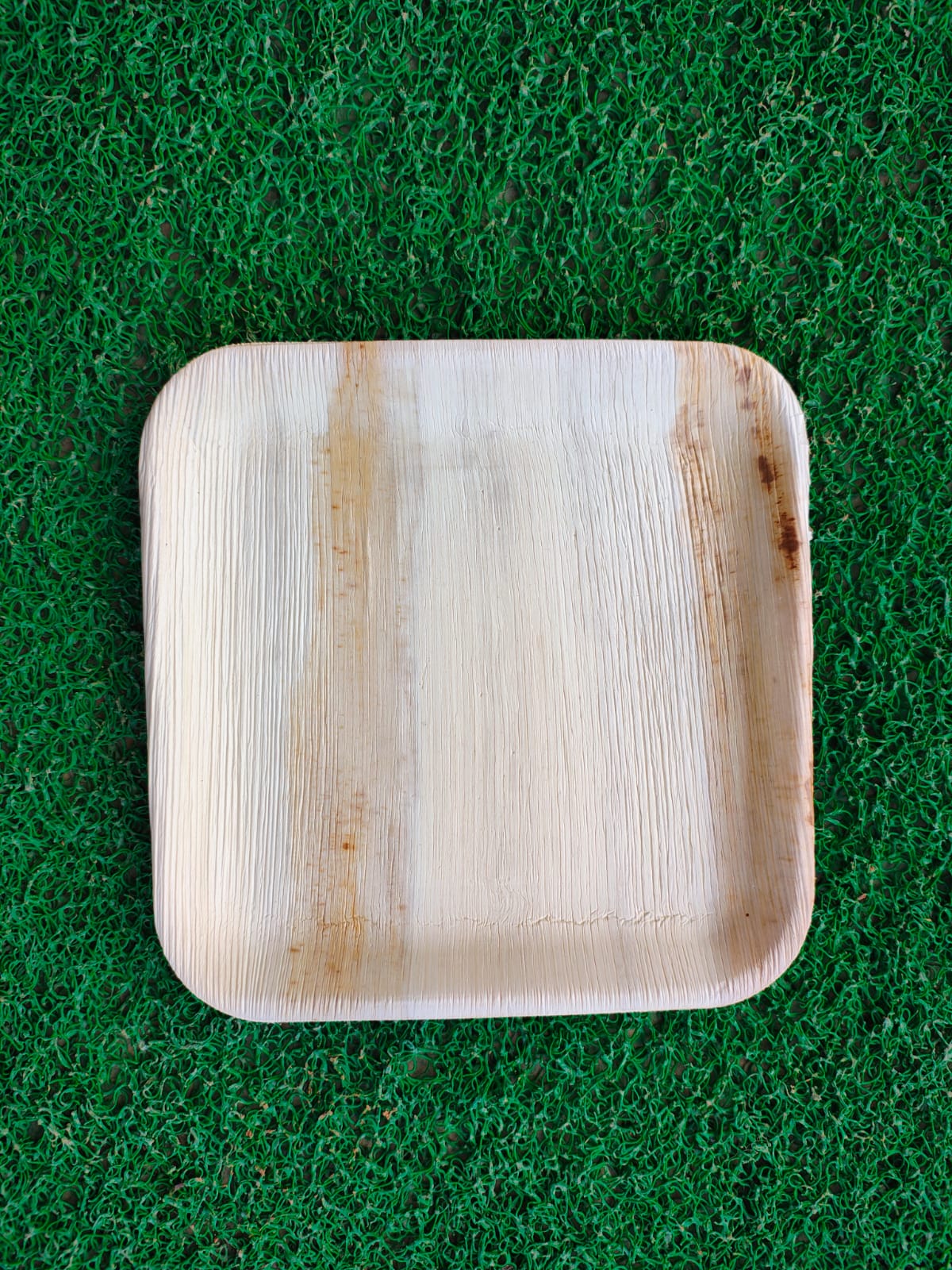 We Offer Areca Palm Leaf Square Plates. We manufacture and export Areca palm leaf products like plates, bowls and cups in different shapes and sizes. These Areca leaf products are carefully made and sanitized for export market. These products are sturdy, leak proof, micro wave safe and can be used for both hot and cold food products.